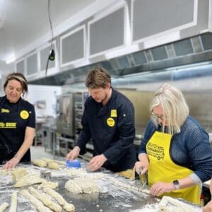 The enthusiastic team from deliberatepractice recently attended OzHarvest’s Cooking for a Cause session. We worked with a passionate group of individuals who are committed to ending food waste and supporting the broader community during times of need.In their Melbourne Head Office in Port Melbourne, they have a commercial kitchen and warehouse that is humming with activity.On arrival, we were introduced to the dedicated team and their loyal volunteers, who share the mission of OzHarvest, some interesting information about food waste and get you all set up to start cooking. In true OzHarvest tradition, we were provided with a beautiful yellow apron and set to work on the delicious meals they had ready for us to make.In all, our deliberatepractice groups made 180 meals of gnocchi and pasties from scratch, using 45kgs of saved food from some of the major supermarkets and other businesses, which would have normally gone to landfill.